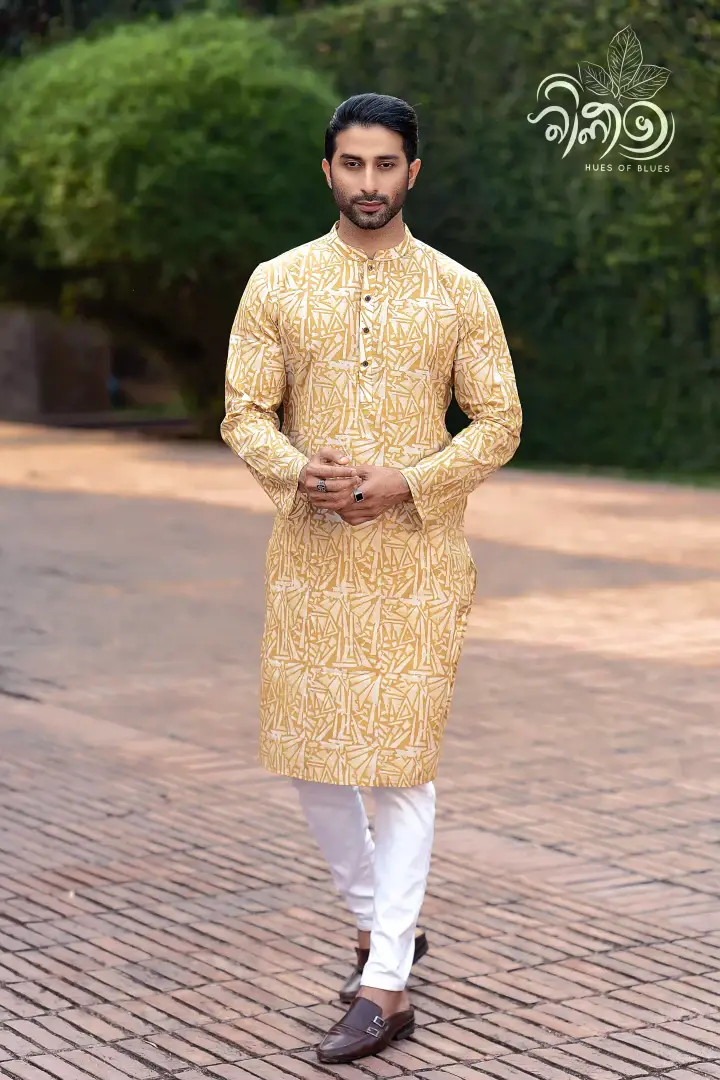 Vegetable dye Men’s Panjabi. Materials – Pure Cotton, soft and comfortable for summer